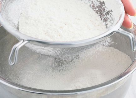 Sift the flour into a large bowl and add the salt, sugar and ghee or butter.