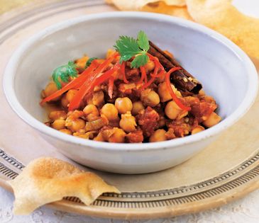 Ghughni is the most popular street food in Kolkata. Street vendors serve it to hundreds of people every day, topped with a flat bread of some kind. It is wonderfully aromatic and packed full of protein and fibre. Traditionally, dried chickpeas are soaked and boiled until tender before cooking them in the spiced sauce, but canned chickpeas give an excellent result if you rinse them thoroughly before use.