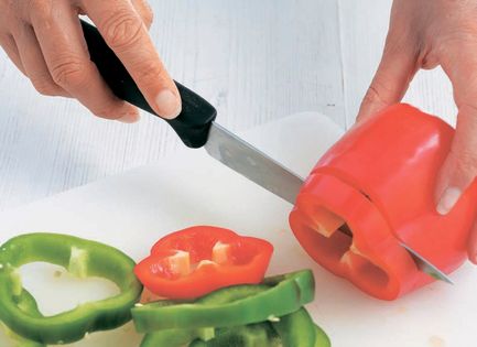 Wash the peppers, pat dry with kitchen paper and then cut them widthways into 5mm/¼in-wide rings. Remove and discard the seeds and the bitter white membrane. Set aside.