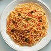 When fresh ripe tomatoes are in season this is a quick and easy summer dish I never tire of. The crushed red pepper is not intended to make the sauce spicy but simply to give it a little liveliness.