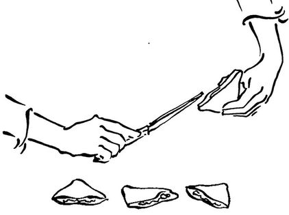 Cut each cake diagonally and, with a pointed knife, cut out a pocket in each half of the curd.