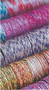 Brightly coloured bangles on sale in the market in Hyderabad.