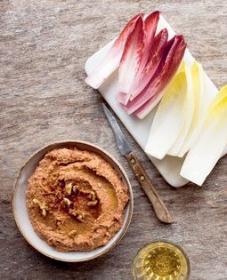 This is a protein-packed snack, and also rather an impressive pre-dinner dip. To save time you can buy ready-roasted red peppers in jars. The flavour will be fine, but not nearly as sweet and intense as home-roasted peppers. (Picture on following page.)