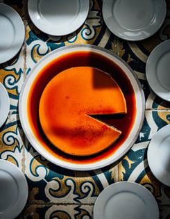 When summer turned searing hot and humid in Bombay, we would eat chilled bowls of flan (we call it caramel pudding in India). Sometimes we made it from an instant mix, and sometimes we made it from scratch. Here I celebrate one of my favorite childhood desserts through flavors I’ve learned to love as I grew older. The bittersweet taste of caramelized sweet jaggery is offset by the creaminess of the flan and the aroma of hazelnuts. You have two options for this recipe, depending on the time