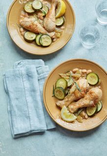 Comforting and light but deep in flavour, this is an easy, nourishing dish for any night of the week. It’s a nutritionally balanced meal, too, delivering on fibre from the vegetables and protein thanks to the beans and chicken. I sometimes serve this with a crisp salad or steamed greens, but more often than not we just eat it as it comes. If you’d like to freeze it, strip the chicken meat from the bones first and it’ll be fine for up to 3 months.