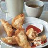 Wontons are a popular Chinese street snack, containing many different fillings. Here a heady combination of shellfish and creamy soft tofu combine to make a satisfying snack. Wontons are very easy to make and lend themselves to deep-frying, steaming or adding to soups. It is important to work quickly when using wonton skins – after making the wontons, do not let them stand for too long before cooking, as the skins can become brittle when exposed to the air.