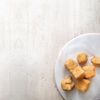 Preheat the grill or broiler to medium. Place the tofu cubes in a grill pan and grill for 2–3 minutes, then turn them over and continue to cook until they are crisp and golden brown all over. Watch them carefully; they must not be allowed to burn.