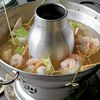 Probably one of the oldest forms of social entertainment, a Mongolian steamboat is a really festive winter warmer, a convivial repast meant for at least six people, all seated around the bubbling centrepiece. The traditional utensil is a large brass pan with a built-in funnel in the centre; charcoal is put in the space directly under the funnel and lit. Stock is then poured into the moat and, when it boils, diners immerse the foods of their choice to cook in the stock using wire mesh spoons