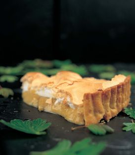 Line a 20cm loose-bottomed flan ring, or deep dish, with sweet shortcrust pastry and bake blind. (Gas Mark 5, 190°C, 375°F)