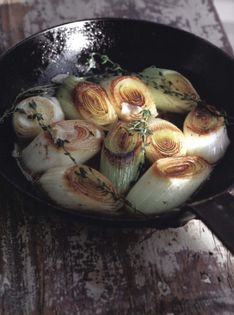 Leeks are such a rewarding vegetable and can be given so many imaginative treatments it surprises me that they seem to be joining the ranks of overlooked veg in this country. Perhaps it is the perceived difficulty of getting all the grit out of them that has had this effect. It is actually quite easy: just cross-cut the green tops and fan out the leaves, so that you can rinse away every last bit. This dish is wonderful with any roast but particularly suits fish.