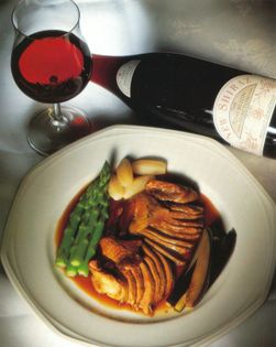 Bone the squab and spread them skin side down. Sprinkle the flesh with the marjoram and thyme and season with salt and pepper. Reshape the squab and secure with cane skewers. Season, brush with butter and place in a roasting dish with the whole cloves of garlic and the cardamom seeds. Place in a