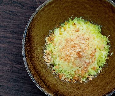 This is our version of fish pie, quite a nostalgic dish with a twist. The idea is to give you something that you recognise but that’s very light, especially as it’s part of a tasting menu. Dive in, it takes you right back!