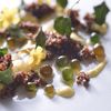 Cook oca in olive oil in a vacuum bag at 185°F (85°C) for 45 minutes. Dress cushuro with olive oil. Cook cañihua in boiling water for 8 minutes. Keep warm.