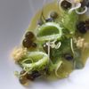Cushuro is a precious algae-like food discovered in the Andean highlands. More than just a local curiosity, it is rich in umami. It is combined with maca root (Lepidium meyenii), wild oca (Oxalis tuberosa), wild cucumber and wild celery, all found in the Peruvian Andes. A tangy leche de tigre sauce full of umami brings the whole dish together.