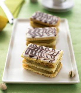 Impossibly light and airy considering that the pastry foundation is composed of dozens, if not hundreds, of gossamer-thin layers, the classic Napoleon is a delicious study in contrasts. Rich, silky smooth cream alternates with those shatteringly-crisp sheets, piled high in alternating stratum. Razor-sharp corners lined up in perfect rows behind French bakery cases, icing immaculately striped as if printed by a machine, much of their popularity stems from their innate beauty.