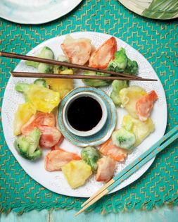 First, make the batter. Put the cornflour and flour in a large bowl, whisk to combine, then make a dip in the middle. Slowly pour in the sparking water, whisking all the time, until the batter is smooth. Put to one side.