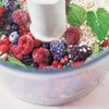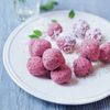 These fruity balls don’t contain any nuts so are suitable for school. Frozen berries are a great standby ingredient and are blended with oats, quinoa, seeds and vegan yogurt to make a protein- and vitamin-packed snack for energy on the go. The mint adds summery freshness.