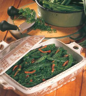 Top and tail the beans. Bring a large saucepan of water to the boil. Add the salt and the beans and simmer for 10 minutes, or until tender. Drain and refresh with cold water to stop the cooking process. Drain well.