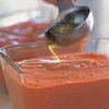 In a food processor, finely chop the garlic. Add the almonds and pulse until finely chopped. Add the roasted peppers, vinegar, and paprika and process until smooth. With the motor running, gradually add the oil. Season with salt and pepper.