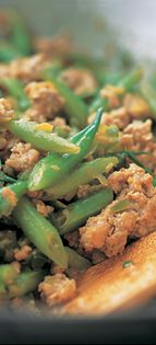 Bring a large pot of lightly salted water to a boil. Add the beans and cook for 2 minutes. Drain. Place under cold running cold water to halt the cooking. Pat the beans dry.