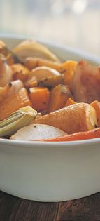 Preheat the oven to 400°F(200°C). Place the beets, turnip, squash, fennel, parsnip, carrots, and garlic on a rimmed baking sheet. Pour the butter over the vegetables. Sprinkle with the sage, 1