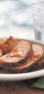 Preheat the oven to 450°F(230°C). Rub the pork all over with the cut sides of the garlic clove. Sprinkle with 1 teaspoon each salt and p