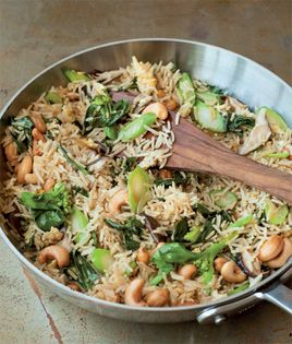 This recipe is an ideal way to use leftover cooked rice. In fact, leftover rice is preferable to fresh, yielding perfect, separated grains when stir-fried. For a milder flavor, use broccolini instead of the Chinese broccoli.