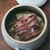 The ideal pot for this dish would be a small earthenware crock or otherwise heavy casserole, one in which the ingredients are not crammed but fitted snugly.