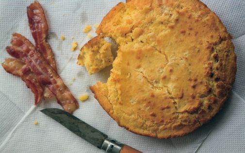 Piping hot home-made cornbread revealed from a tea towel is a fantastic accompaniment to meats and beans from my barbecue. Filling, with that unmistakable corny taste, it also goes with bacon, pushed around the frying pan to mop up the excess fat. It’s real basic eating, a bread that I can never imagine slicing, but one that should be broken up in big crumbly chunks and eaten following the cry of ‘Come and get it!’