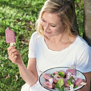 Purée the raspberries using a stick blender, then mix all of the ingredients together, adjust for sweetness if necessary, divide between ice-lolly moulds and freeze until set.