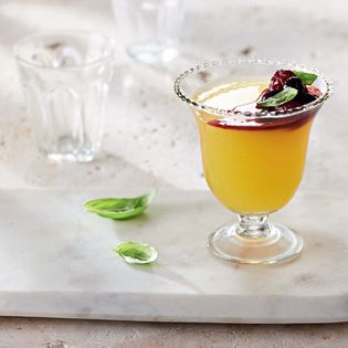 Add the basil, zests and juices, water and honey to a small saucepan over medium heat. Bring to a gentle simmer and then remove from the heat. Remove the basil leaves and set aside.