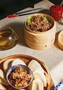 You know me—I like my lamb spicy, grilled, smoky with charcoal. But if you’re into something more subtle, this might be your dish. The lamb, mixed with an aromatic oil tinged with ginger, green onions, shallots, and garlic, gets only a light tingle of spice with Sichuan peppercorns. All those flavors, plus the natural juices of the lamb, are then absorbed by crushed rice for a soft, fluffy base. Steamed until tender, the end result resembles the interior of a meat pie—but with Chinese aroma