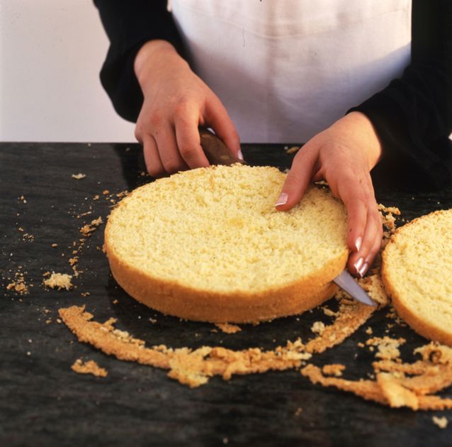 If you want the cake to have a perfectly delicate texture, trim off the crust on the top, bottom, and sides of the cake.