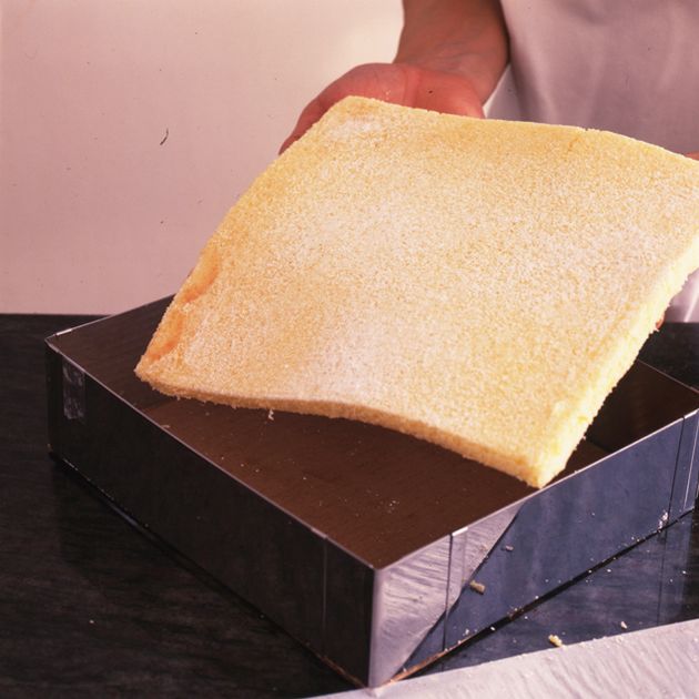 Refrigerate the cake for at least 4 hours. To unmold, warm the outside of the ring and push the cake, with its cardboard base, up through the ring.