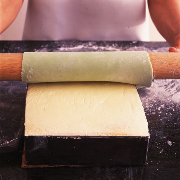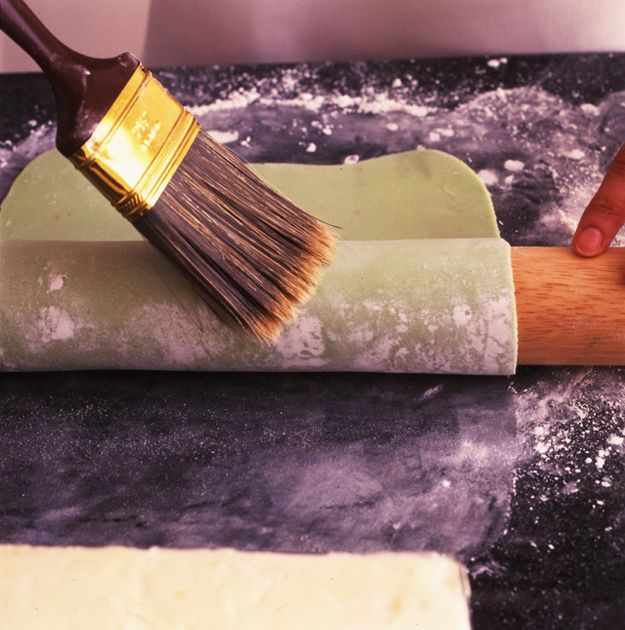 Roll the marzipan up onto a rolling pin. Brush off any sugar clinging to the marzipan.