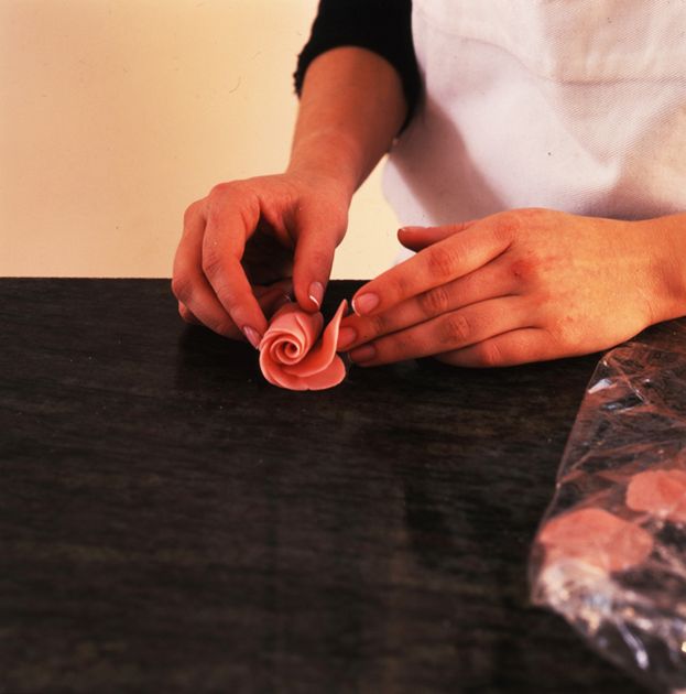 - Place two of the petals on top of each other and begin to roll, starting from what will be the side of the rose.