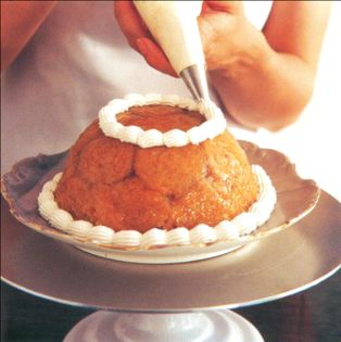 Rolled cakes can be sliced and used to decorate the sides of a dome cake for a dramatic effect.