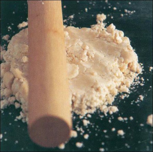 Notice that the pastry dough is very crumbly. Hammer the pastry dough with a rolling pin until you get it into a disk shape.
