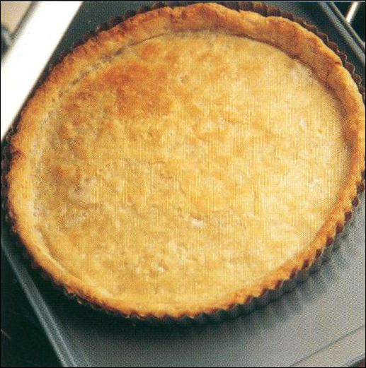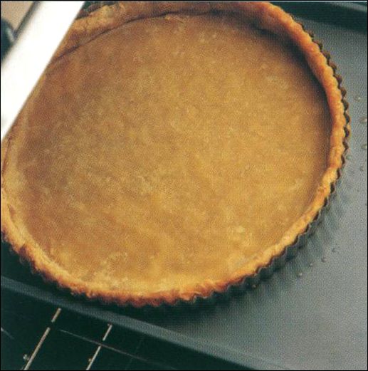Remove the parchment paper and beans. Notice that the tart shell is shiny and gray.