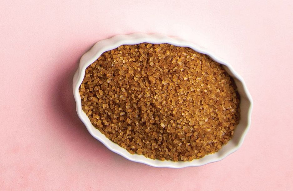 Turbinado sugar, also known as raw sugar, is a type of sugar that has been minimally processed. The texture is very coarse, and it works well in baking as a topping for muffins, scones, or other pastries, to add a crunchy texture.