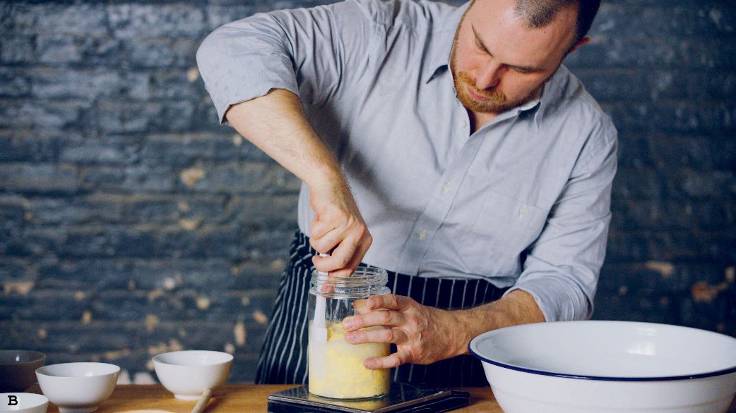 Pour some of your pre-measured water into the storage container to help release the starter (A-B).