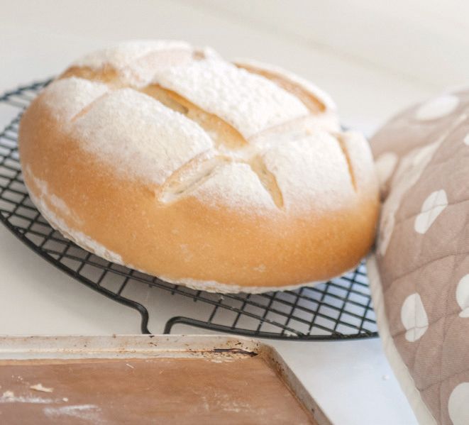 Bread should be turned out of the tin (pan) or transferred from the tray to a wire rack to cool straight away to prevent it from sweating.