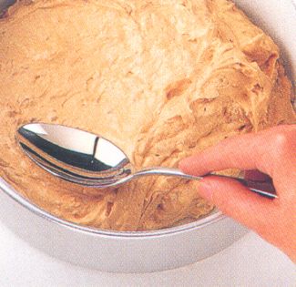 Follow the recipe instructions when preparing a cake for the oven. Some cakes are made smooth simply by using the back of a spoon, while others have a dip made in the centre.