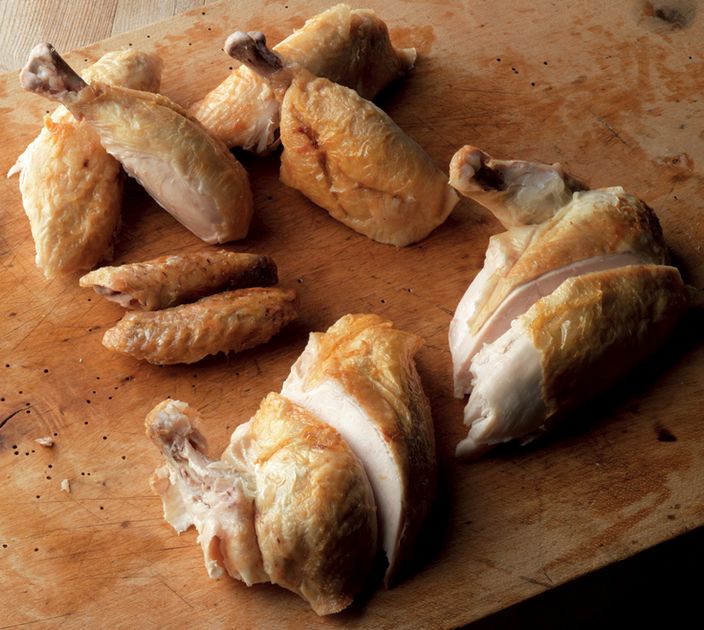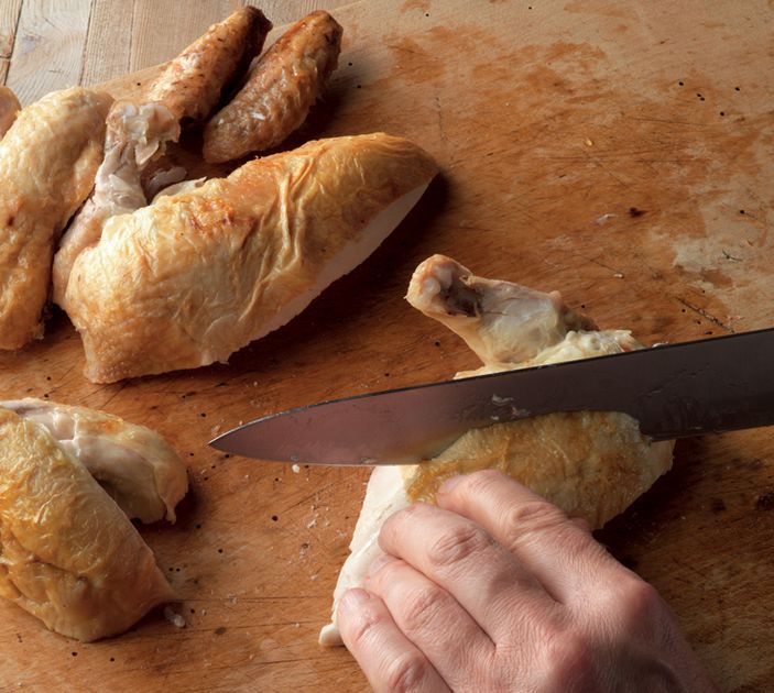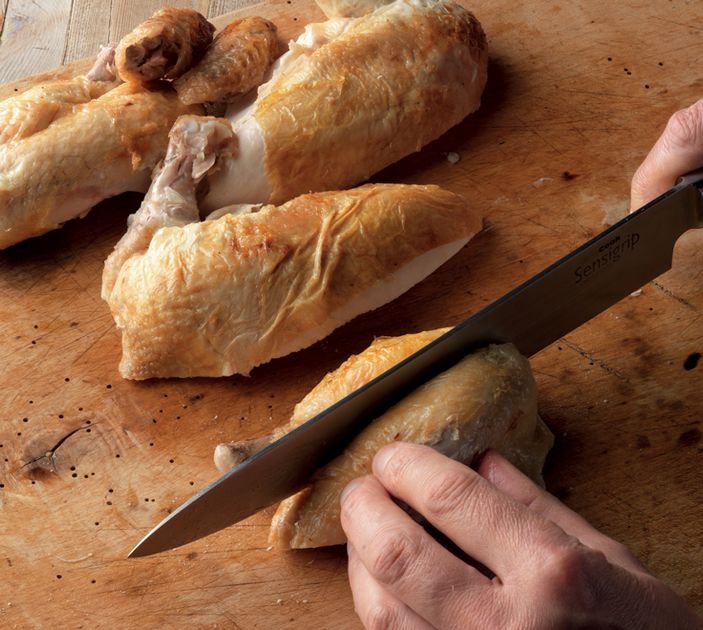 - Cut the breast joints into two by cutting across on the diagonal.