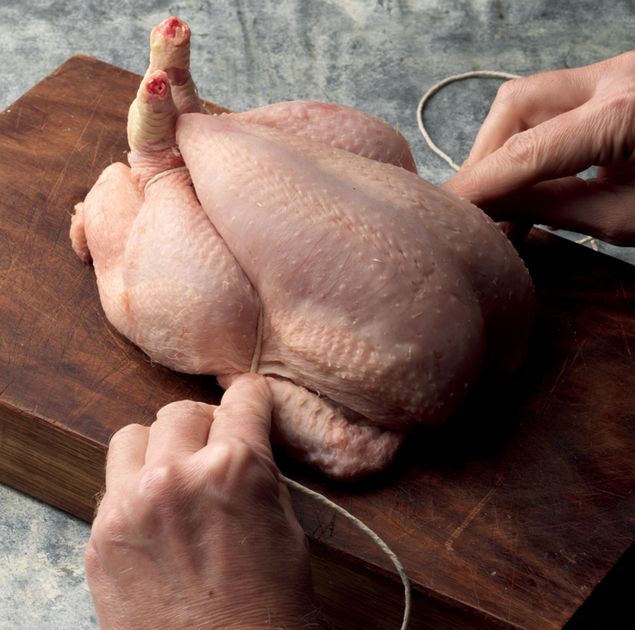 Here you have the trussed bird, ready for the oven.