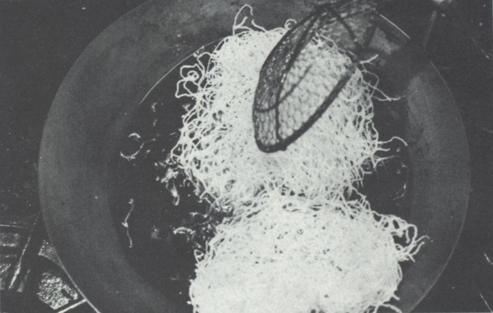 When used as a crisp garnish or as a base for a sauced dish, transparent noodles are deep-fried.