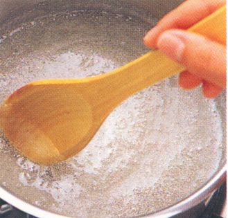 Stir the sugar and water over low heat until the sugar dissolves completely.