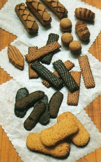 A range of biscuits from Pfatish in Turin: Alumetti, Cannoncini alla Crema, Baci di Dama, Biscottini da Gelato, Biscottini Frollino Ovale, Lingue di Gatto al Ciocolatto, Biscotto Novara.