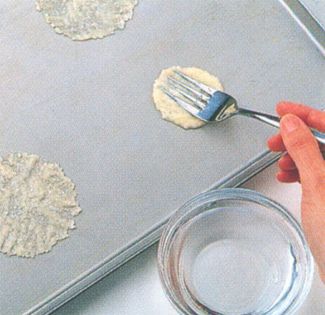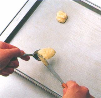 Drop a level teaspoon of the mixture onto o tray and flatten slightly with a spoon.