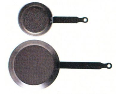 Crêpe and blini pans are made of cast iron, which conducts heat well and cooks food evenly. The only difference is the size - crêpe pans are usually 22 cm in diameter, blini pans 12 cm. Once the pan is “proved” or seasoned, it is practically non-stick. To prove, heat the pan and rub with salt. Wipe clean and repeat with oil. Do not wash the pan after use, just wipe it clean.